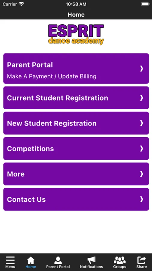 The Esprit app is an easy-to-use, on-the-go way to access everything Esprit Dance Academy has to offer right from your smartphone.