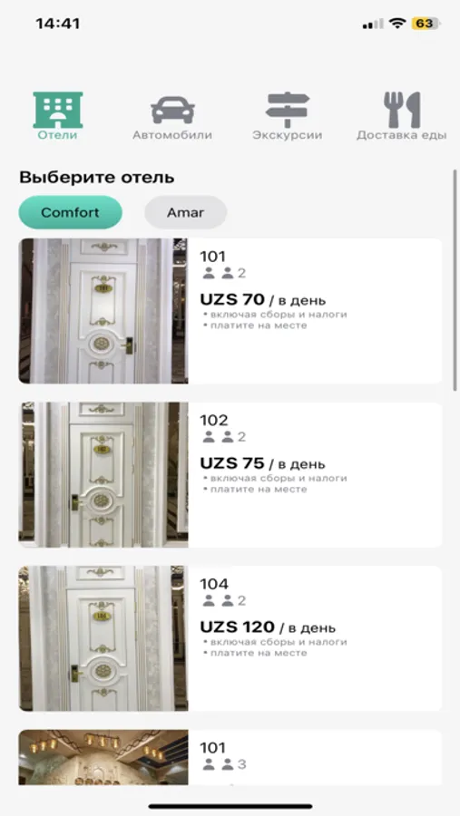 С нашим приложением вы можете мгновенно бронировать номера в самых уютных отелях Amar и Comfort. Откройте для себя настоящую гостеприимность Самарканда, наслаждайтесь комфортом и незабываемым отдыхом.