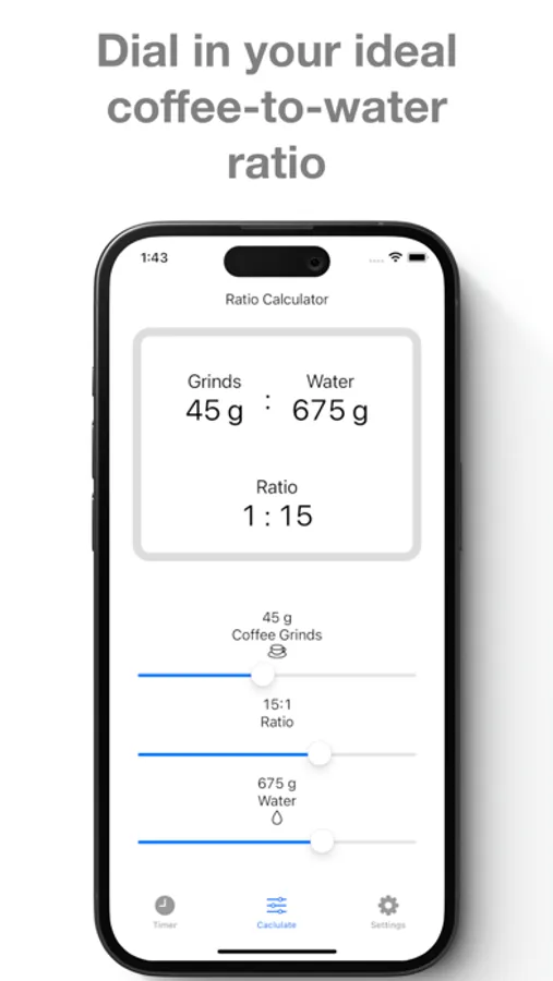 Perfect Coffee-to-Water Ratio: The water-to-coffee grinds calculator takes the guesswork out of measuring water, helping users achieve the ideal coffee-to-water ratio for their desired strength and taste.
