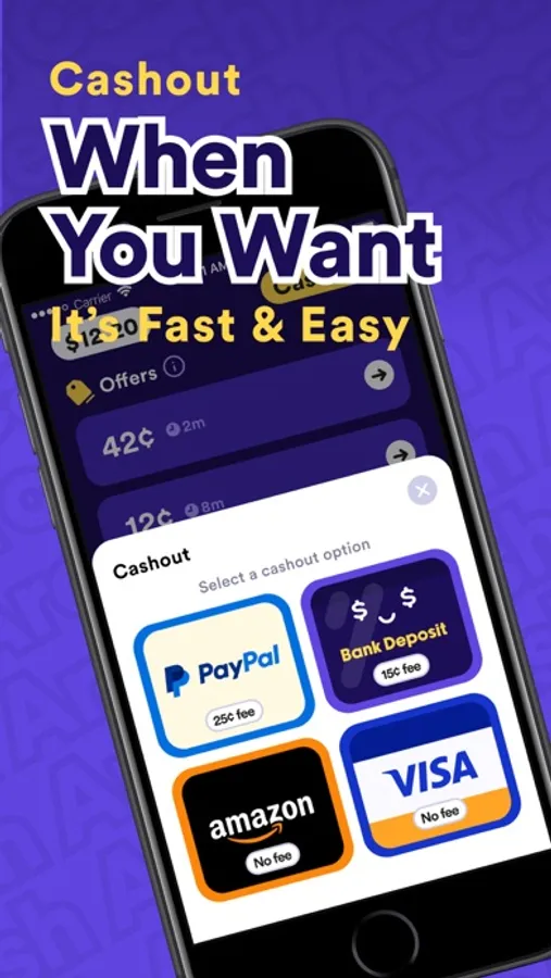 Unlike other apps that use confusing points systems, we deal only in real money. Cash out easily to PayPal, Amazon Gift Cards, Virtual Visa, or your Bank Account.