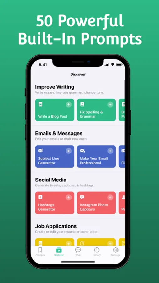 POWERFUL BUILT-IN PROMPTS: Promptio comes with an array of over 50 powerful, built-in chat prompts. Whether you're a beginner or an AI chat veteran, these prompts offer diverse conversation starting points that guarantee an engaging chat experience.