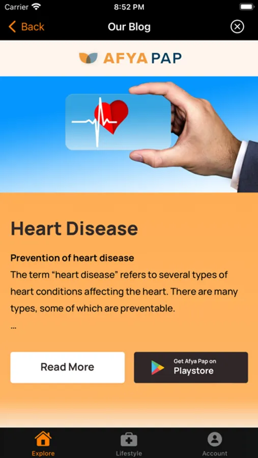 Are you living with diabetes? Or struggling to manage your high blood pressure? Start your journey to better health with Afya Pap: we’re here to keep you on track, even on your most difficult days. With our detailed health insights, direct-to-doctor chatting, and daily health tips tailored specially for you, you’ll have the tools and information you need to get on top of your condition all in one place; and we’ll be here to help you along every step of the way.