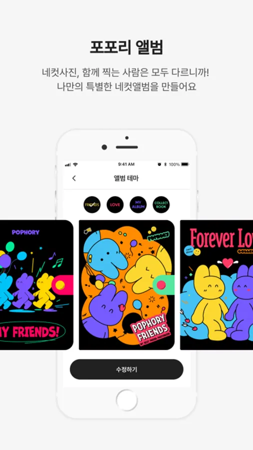 나를 표현하는 특별한 앨범 커버를 선택하고 나만의 네컷앨범을 만들 수 있어요!