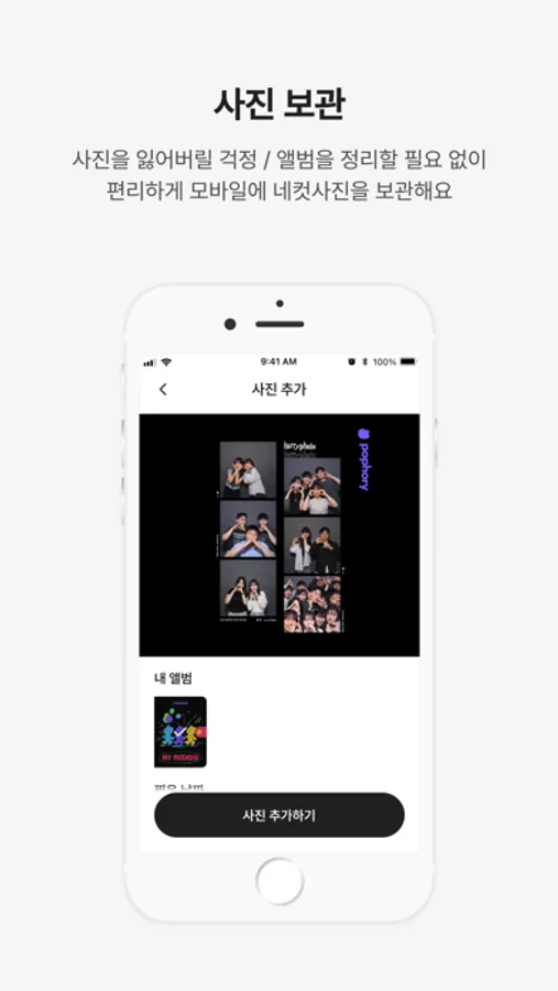진짜 앨범처럼, 진짜 앨범보다 더 편리하게 사진을 보관하고, 한눈에 확인할 수 있어요!