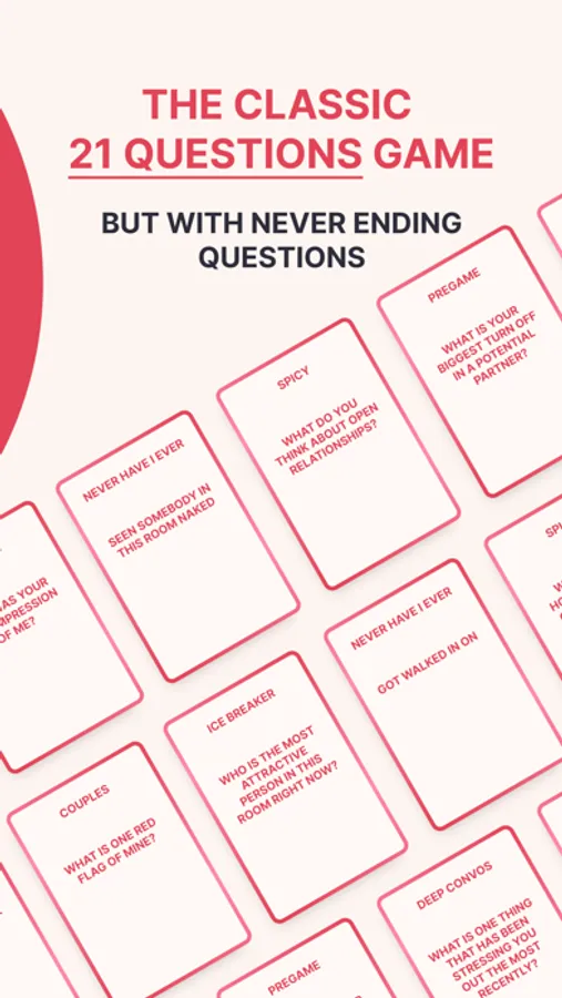 "21 Questions" offers a diverse collection of decks designed to ignite conversations and forge connections among couples and friends. Whether you're looking to deepen your relationship, dive into controversial topics, explore deep conversations, or simply break the ice, "21 Questions" has the perfect deck for every occasion.