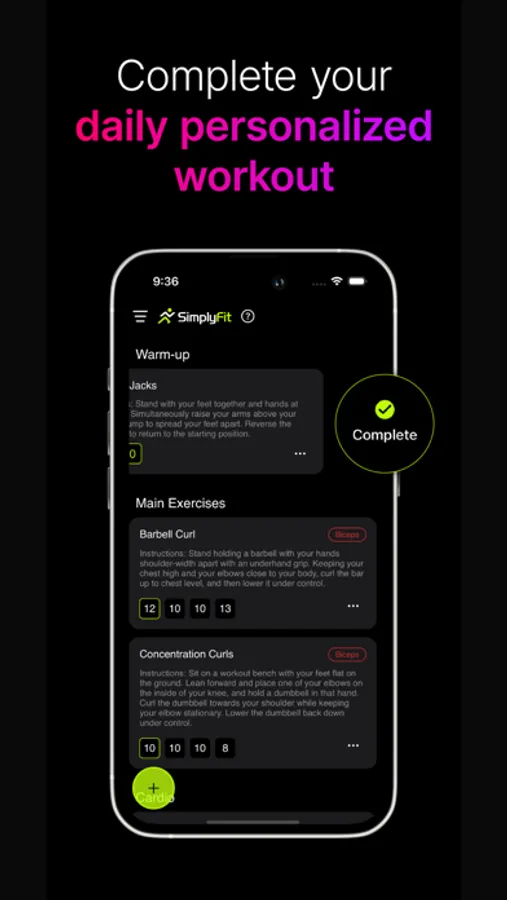 SimplyFit will guide you through each rep and set, whether it’s at the gym or your living room.