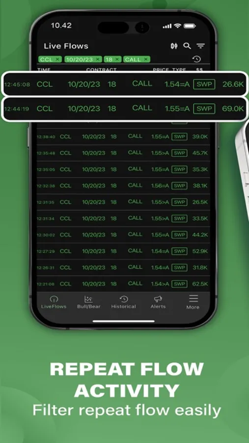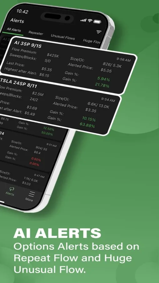 Our smart algos continuously scan all the flows every minute to identify powerful trade-worthy alerts and send you push notifications in real time.