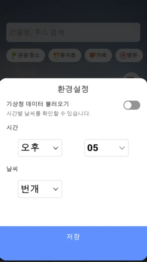 - 주소, 카테고리 검색 및 실시간 날씨 반영