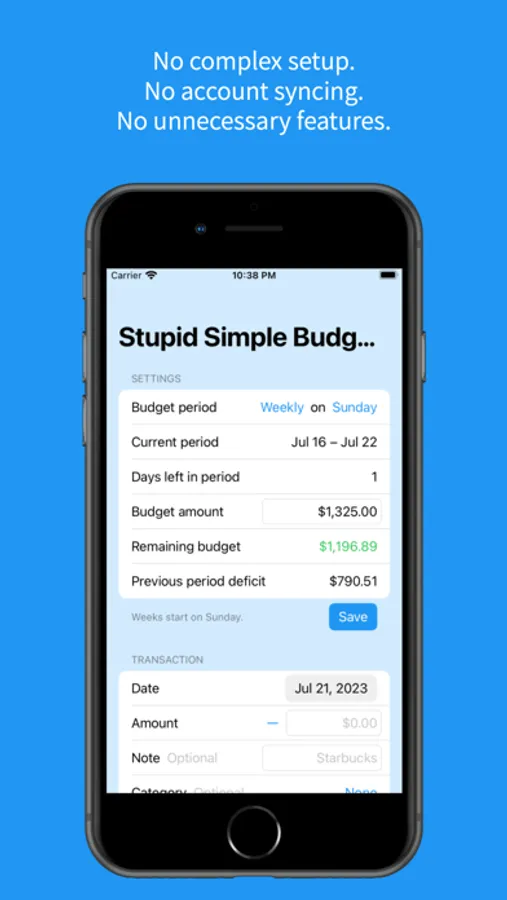 Stupid Simple Budgeting is an *in-the-moment* spending tracker that updates your balance *in real time*.
