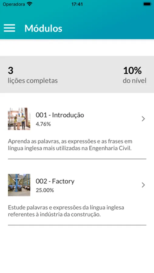 O progresso do usuário é sincronizado em seu dispositivo, de modo que ele consiga visualizar as atividades concluídas e as que ainda não foram estudadas.