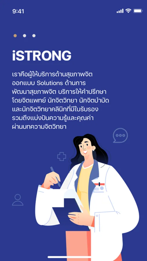 ยินดีต้อนรับเข้าสู่การดูแลสุขภาพใจกับ iSTRONG เพื่อนที่พร้อมเข้าใจคุณในการเดินทางเพื่อพัฒนาสุขภาพใจ แพลตฟอร์มของเราเป็นเสมือนมุมผ่อนคลายสำหรับผู้ที่ต้องการความเข้าใจ การรับฟัง และกำลังใจในพื้นที่ปลอดโปร่งและเบาสบาย ที่นี่คุณจะได้พูดคุยกับที่ปรึกษามืออาชีพที่มีประสบการณ์ เพลิดเพลินกับเครื่องมือการดูแลใจ และรับเนื้อหาที่ช่วยสนับสนุนการเดินทางสู่ Well-being ของคุณ