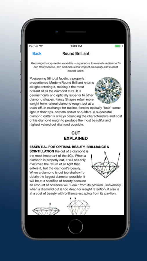 ◆ 4 GRADING SYSTEMS SIMULTANEOUSLY DISPLAYED: the Gemological Institute of America (GIA), International Diamond Council (IDC), American Gem Society (AGS), and the Russian Grading System (TU). The only diamond pricing App to display all 4 international standards!