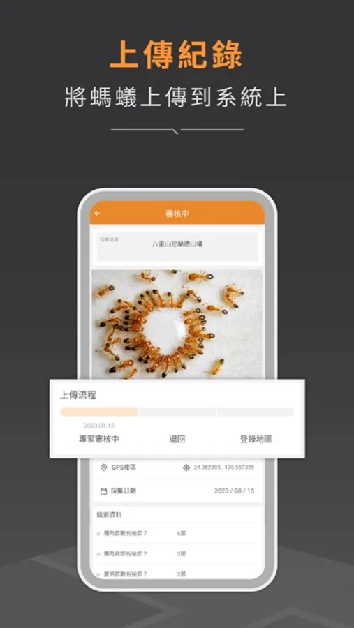 ■ 歷程紀錄→觀看檢索歷程,將上傳的螞蟻登錄到地圖上