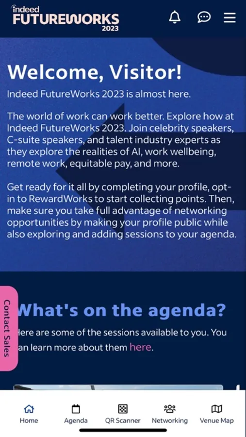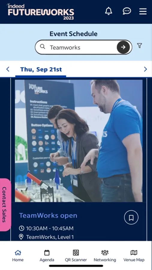 The Indeed FutureWorks event app will keep you up to date with everything happening on-site. Stay connected and informed with these exciting features: