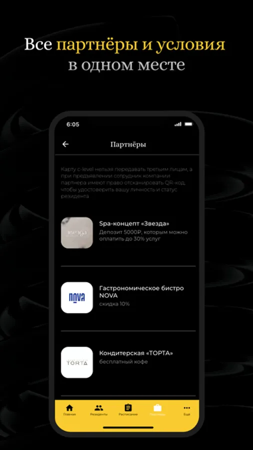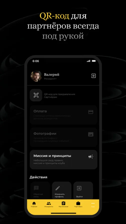 Приложение для резидентов клуба.
