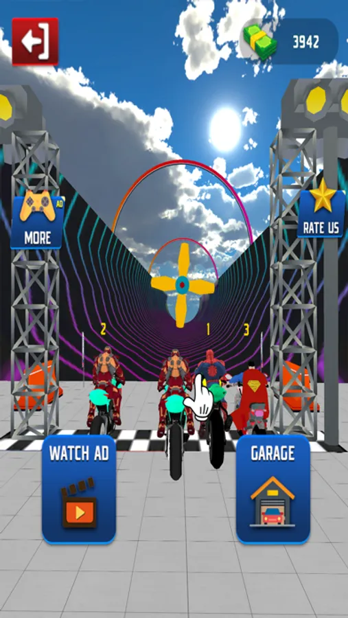 Playing city superhero motor bike racer is always fun, but it is more important to become the real moto rider bike racer champion and complete all the levels in this city superhero moto rider racing game. In superhero mega vertical ramp stunts speed bike rider driving game there are two modes to play i.e stunts mode within time limit and the free racing mode. Master your skills in mega stunt bike riding, sky bike challenges and race against time and then challenge other motorcycle riding opponents.