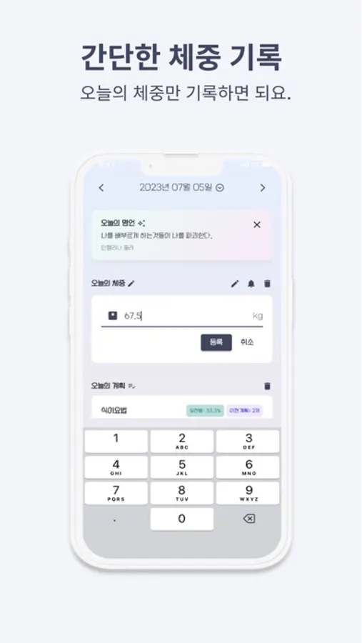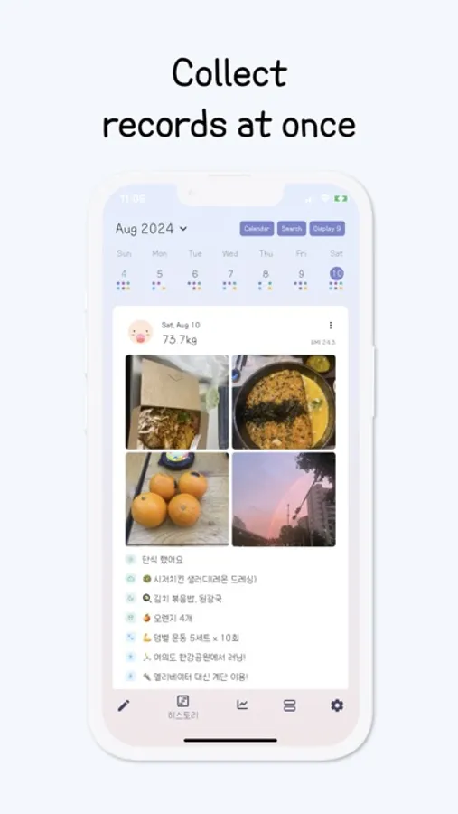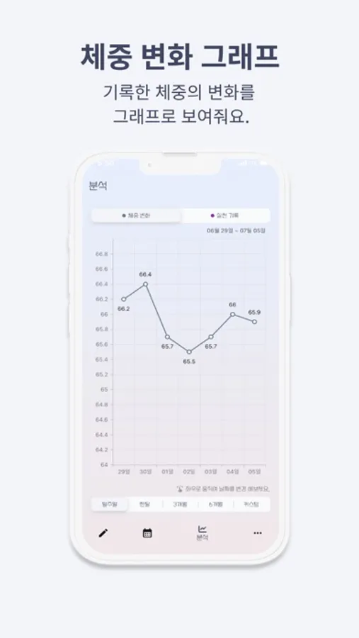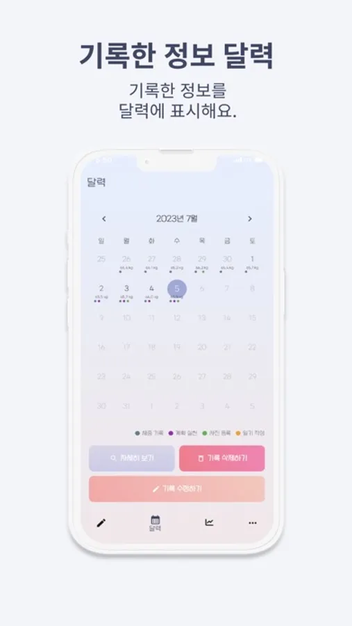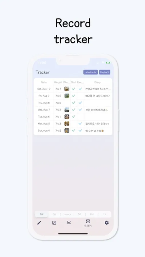 It is an app that allows you to check the recorded data at a glance and check the change in weight by date at a glance.
