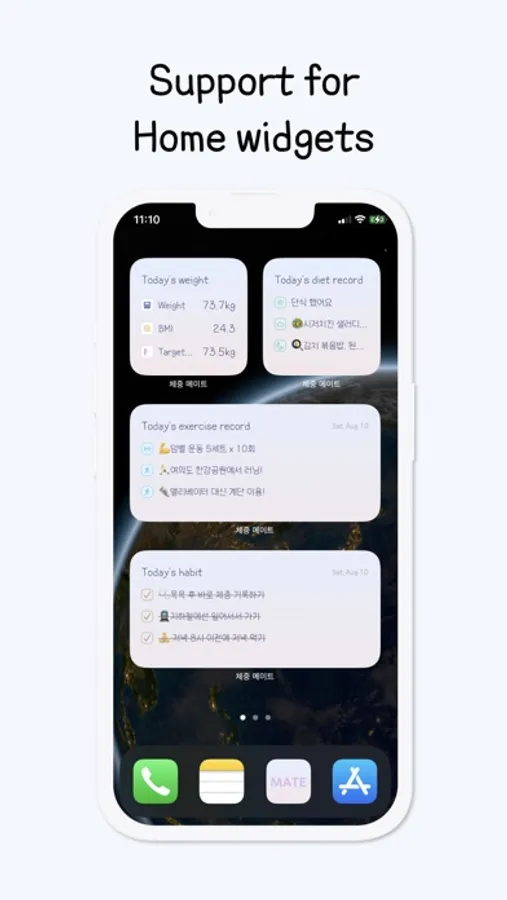 The weight mate records your weight, eye body, diet, and exercise easily and simply