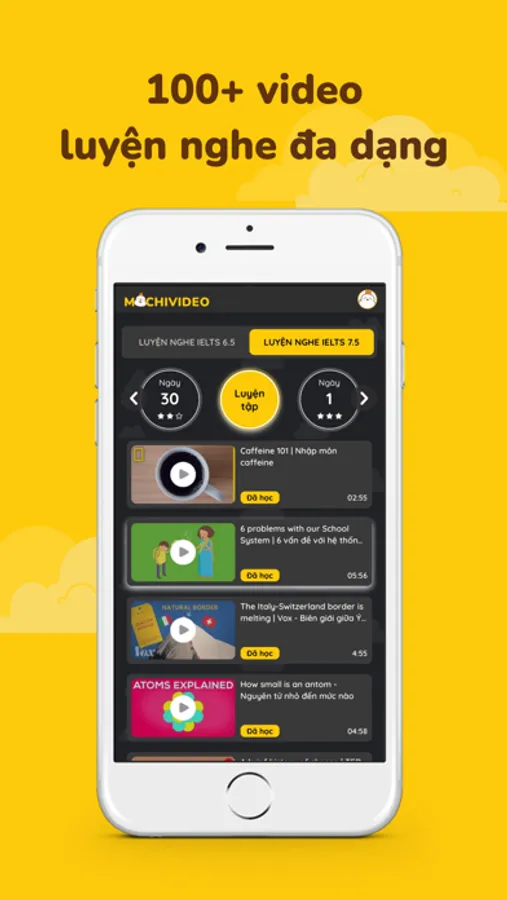 Các bài nghe của MochiVideo giúp bạn làm quen với các chủ đề thường gặp trong đề thi IELTS: Family, School, Education, Science, Sports, Career, Economics, Politics,… Kho video được chia theo 2 gói học luyện nghe IELTS 6.5 và Luyện nghe IELTS 7.5 giúp bạn có thể dễ dàng luyện nghe tiếng Anh phù hợp với trình độ.