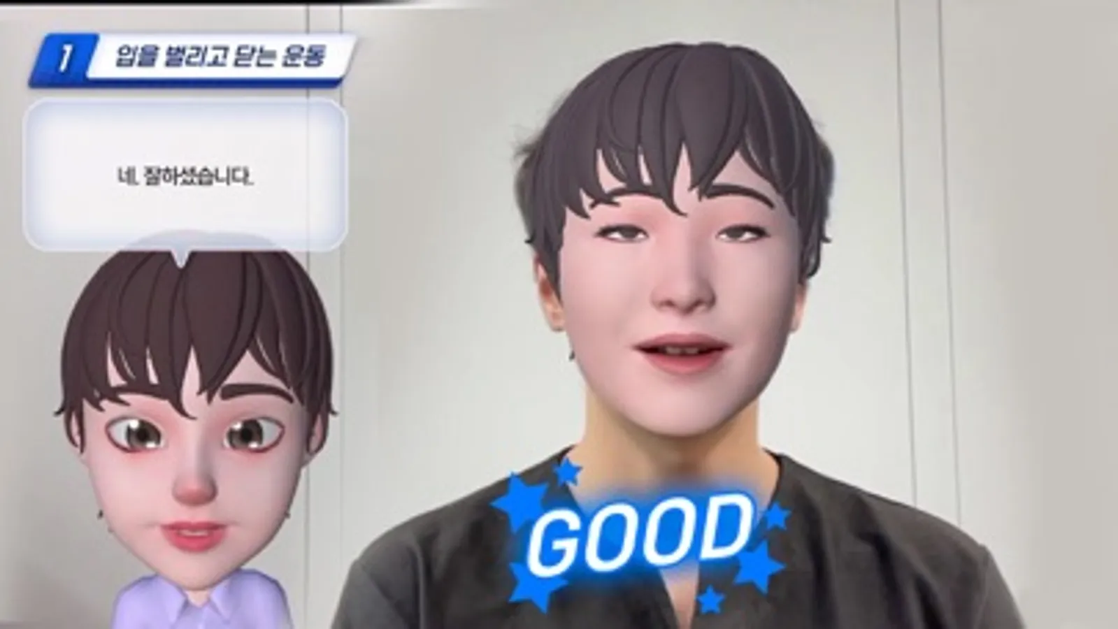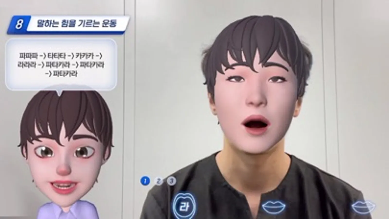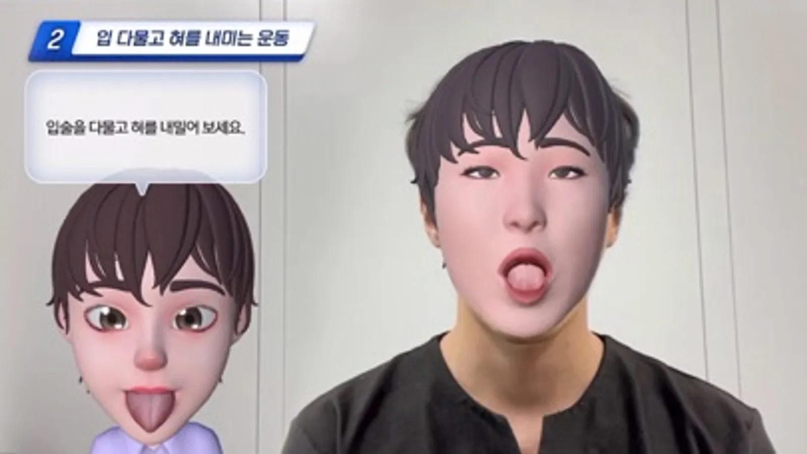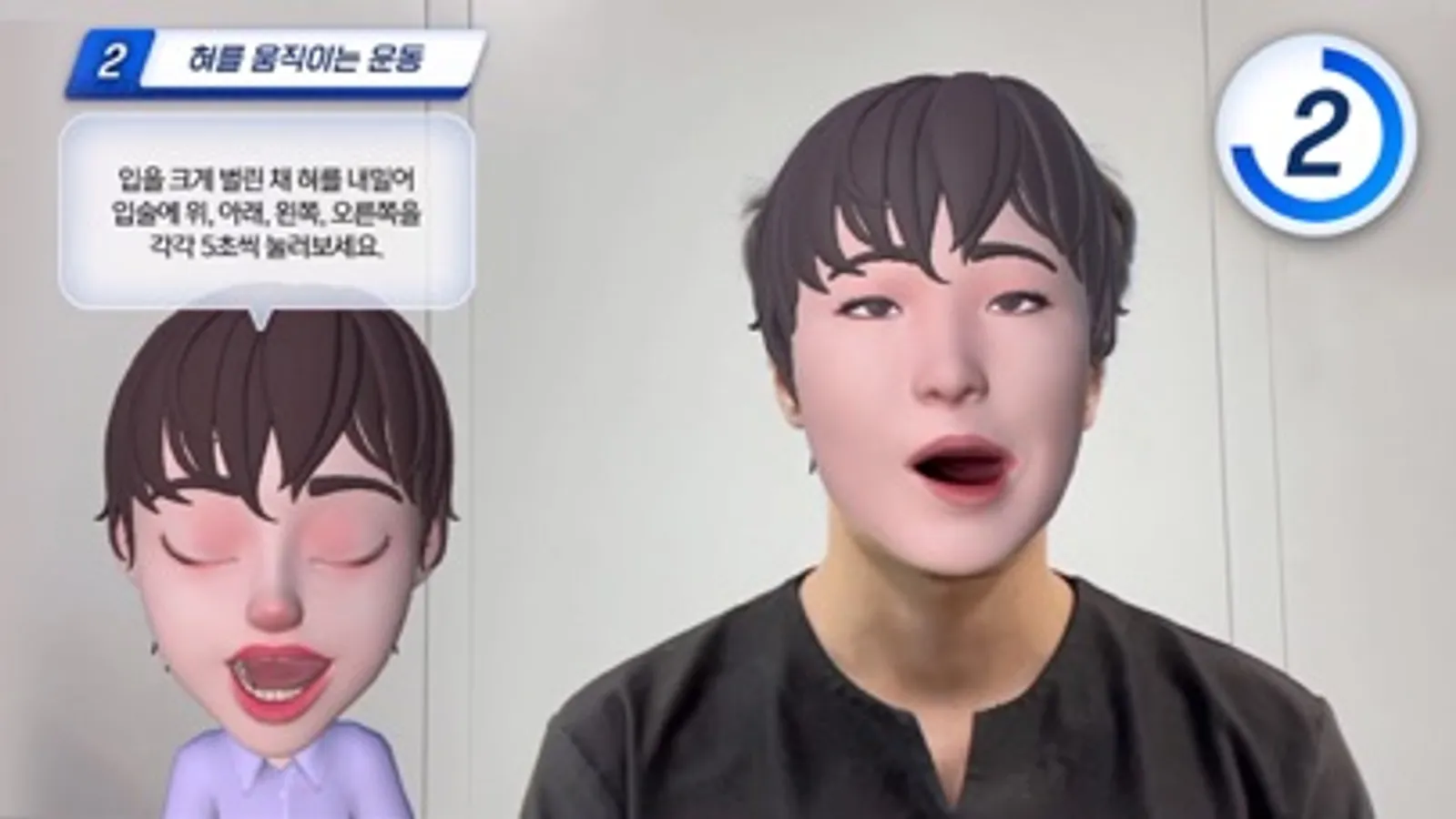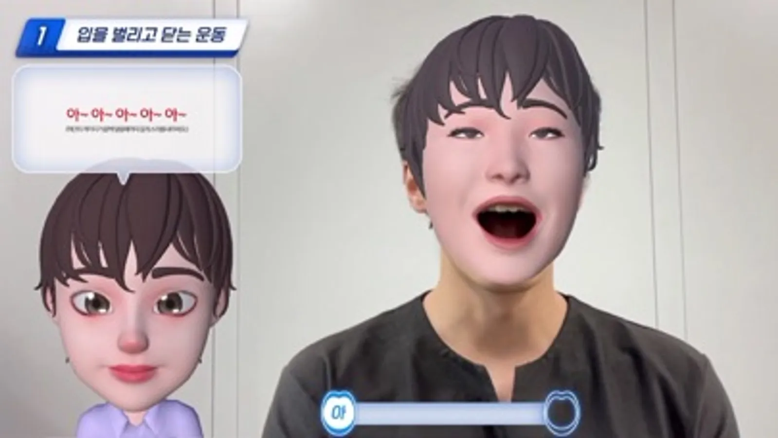이 애플리케이션은 증강현실 기술을 이용하여 이용자가 구강운동을 수행하도록 함으로써