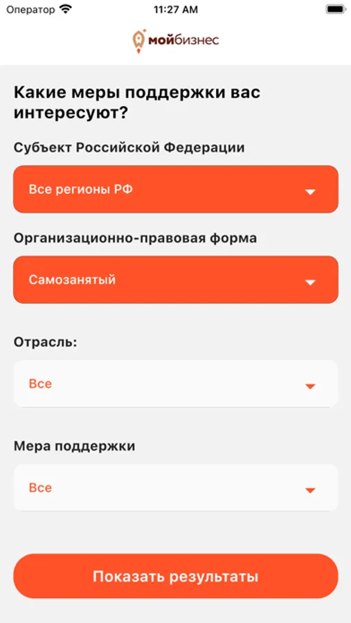 Мой бизнес - меры поддержки Screenshots