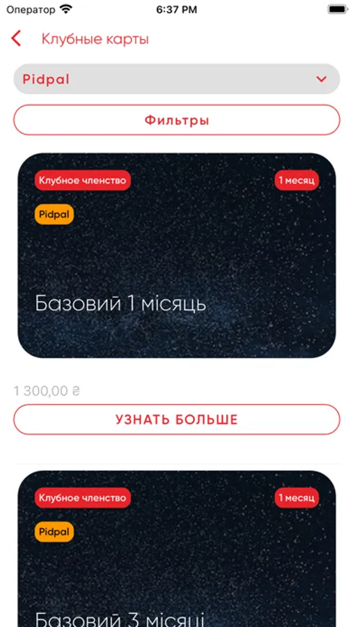 Це мобільний додаток для клієнтів спортивного клубу Pidpal.