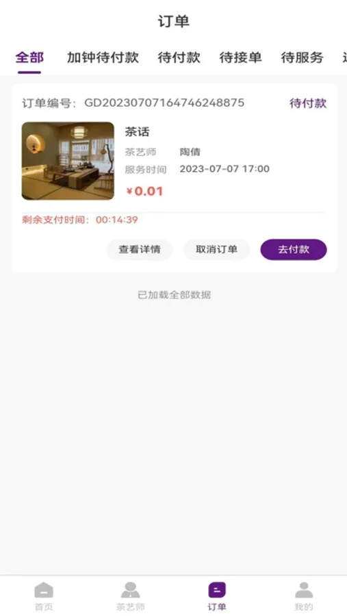 您可自选茶艺师并查看茶艺师的详细介绍(距离、头像、从业经验、状态、评论),项目、下单、支付的。茶艺师收到你的支付订单会立马联系你的。