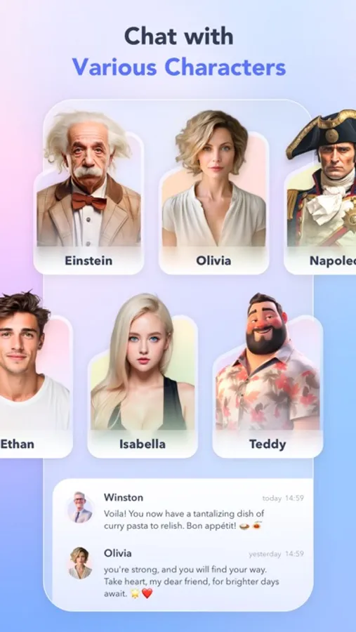 —Chat with AI characters! Feel the mysterious charm of AI voice chat. Choose a virtual character you like to chat, listen to the real voice of their reply, as if you are beside them, and feel the wonderful experience of intimate communication! You can get all kinds of fun and practical value from AI characters, such as: