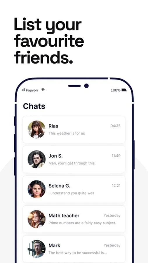 Create your character or talk to ready-made characters waiting for you!