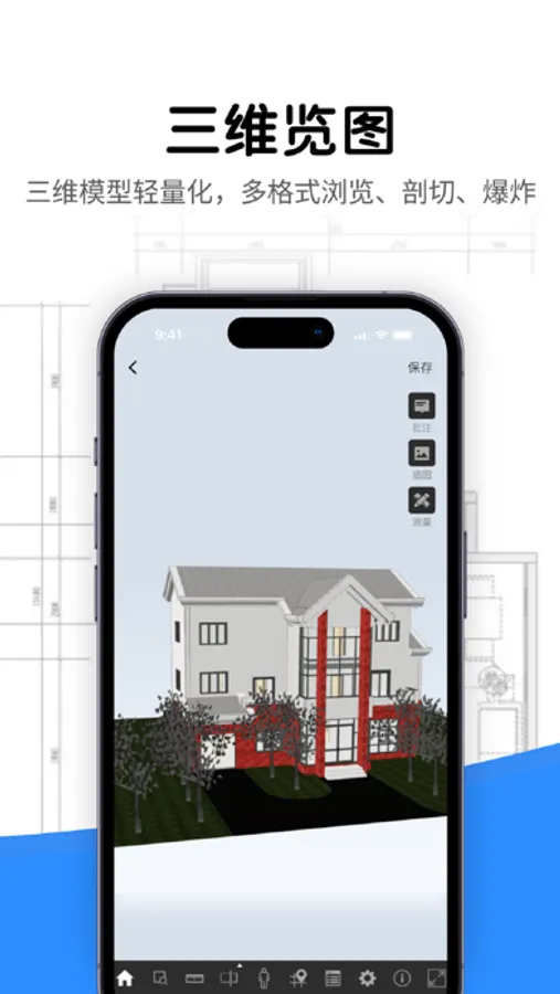 3.三维看图,支持.rvt等三维模型图纸预览、缩放、剖切、爆炸等,查看图纸结构树与多视图;