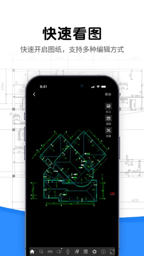 1.快速看图,顺畅打开AutoCAD、CAD看图专业版,天正建筑等各版本CAD图纸,全面兼容天正T20V8格式;