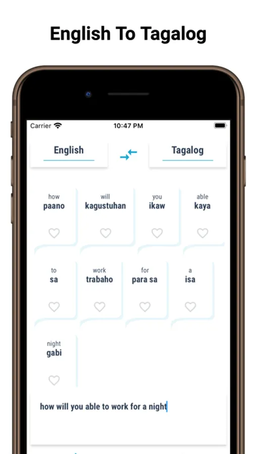 Instant Translation: Translate between English and Tagalog swiftly and accurately.