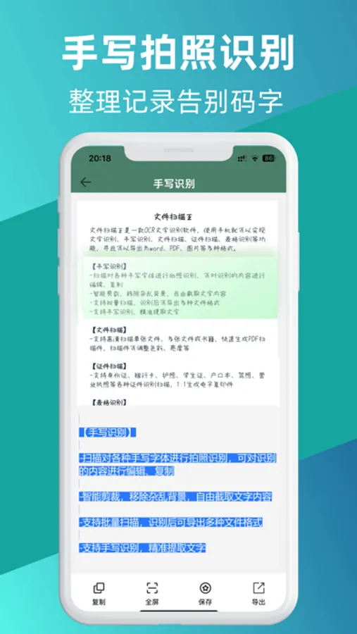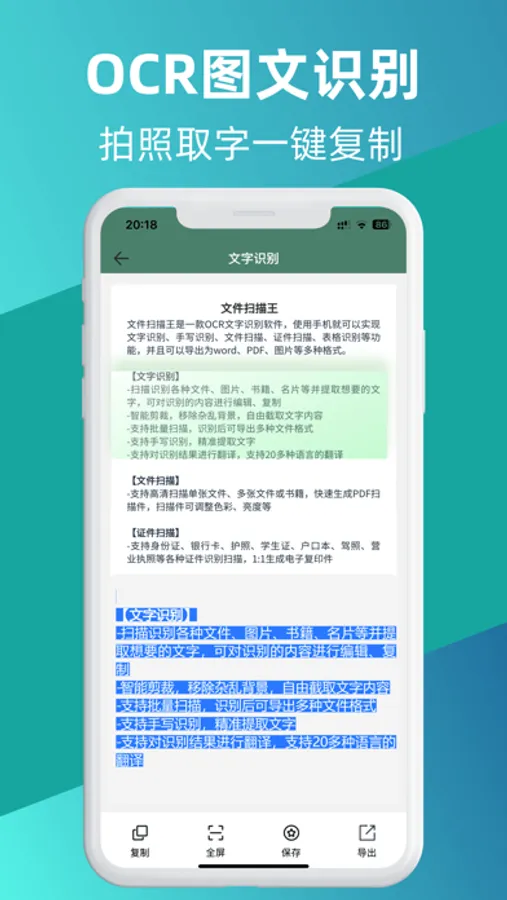 文件扫描王是一款实用的文字识别类app,通过软件轻松识别出图片中的文字,并且还支持各种图片的识别,所有文字自由扫描,还能批量进行识别,提高效率、方便实用;文件扫描王适用于多种场景,办公、学习等都能使用,非常灵活,给你更好的体验;需要的用户可以来下载体验。