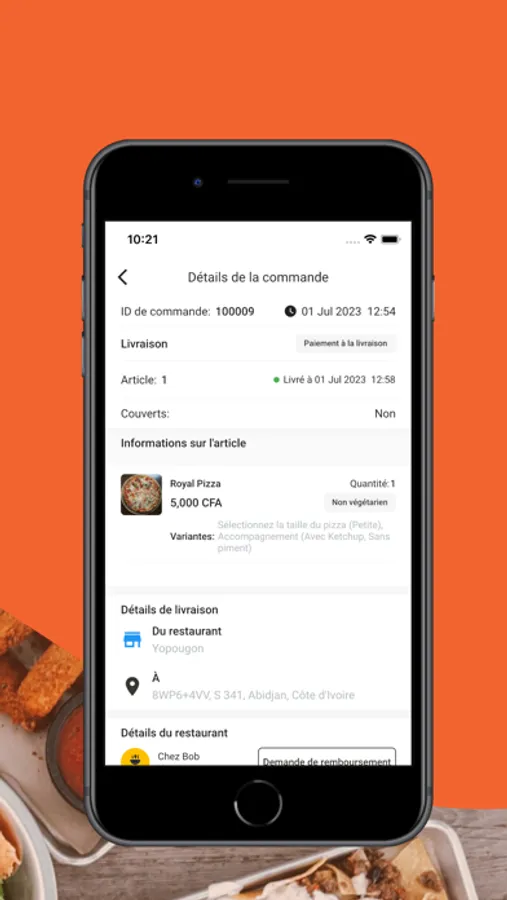 Découvrez une nouvelle façon pratique de commander votre nourriture préférée avec notre application de livraison de repas ! Notre application vous permet de parcourir une vaste sélection de restaurants locaux, de consulter leurs menus et de passer des commandes en quelques clics. Vous pouvez choisir parmi une variété de cuisines, des plats traditionnels aux options plus exotiques, et personnaliser votre commande en fonction de vos préférences. Profitez de la commodité de vous faire livrer directement chez vous ou de prévoir une heure de retrait pour emporter. Avec des fonctionnalités conviviales telles que le suivi en temps réel de votre commande, des notifications pour vous tenir informé de l'avancement de votre repas, et la possibilité de laisser des commentaires et des évaluations, notre application garantit une expérience de livraison de repas simple et agréable. Téléchargez dès maintenant notre application de livraison de repas et savourez vos plats préférés à tout moment, n'importe où !