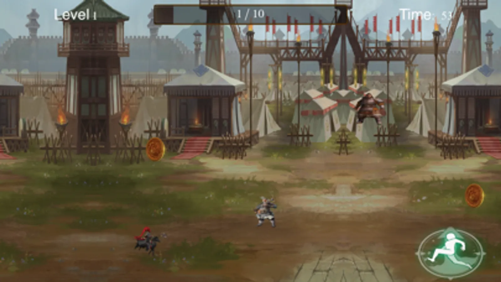 One by pressing the button in the lower right corner to control the jumping of the riding character, touching the gold coin can score, touching the small soldier game is over. Complete the corresponding amount of gold within 60 seconds to complete the level. Welcome to download the experience!