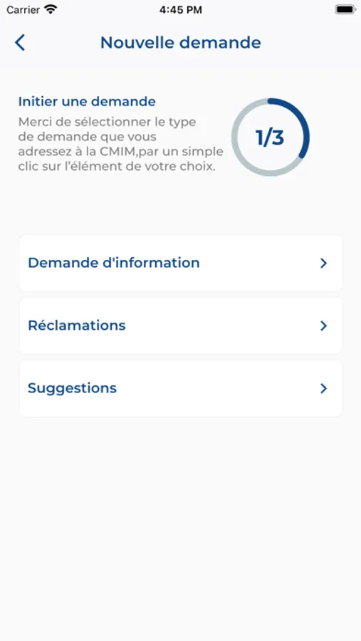 Un espace (de communication et) d’échange et de contact : En mettant l’accent sur la connectivité et l’interaction des assurés avec la CMIM, vous pouvez saisir (interagir directement avec) la CMIM (directement pour) tout type de demande(s), en dehors des prestations. Ainsi vous pouvez (effectuer directement) déposer des demandes d’informations, des réclamations et même des suggestions pour aider à mieux vous servir. En dehors (En complément à) du message de votre demande, vous pouvez y joindre des photos, des documents que vous jugerez utiles pour appuyer (accompagner) votre demande.