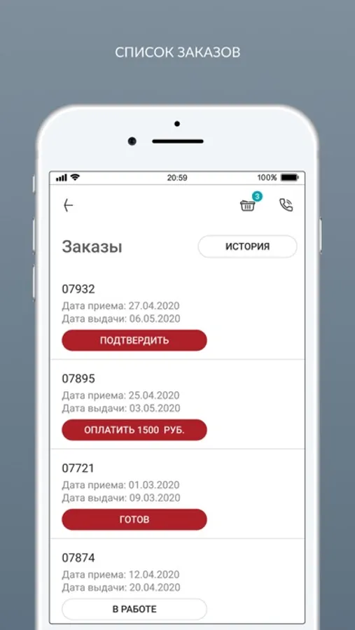Отслеживать свои текущие заказы и историю заказов;