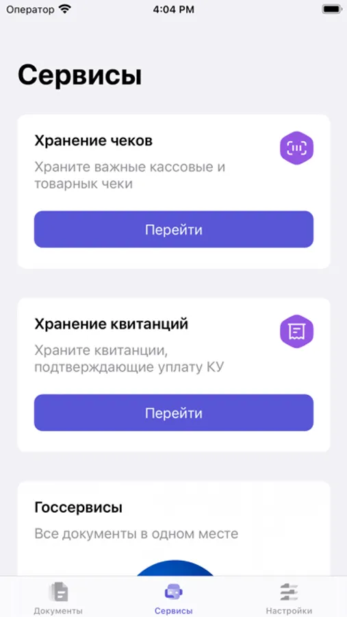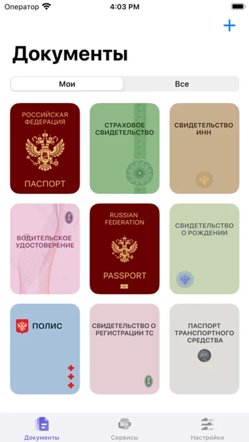 The application is simple and intuitively understandable. You can filter documents: view your data separately from, for example, the data of your relatives or friends.