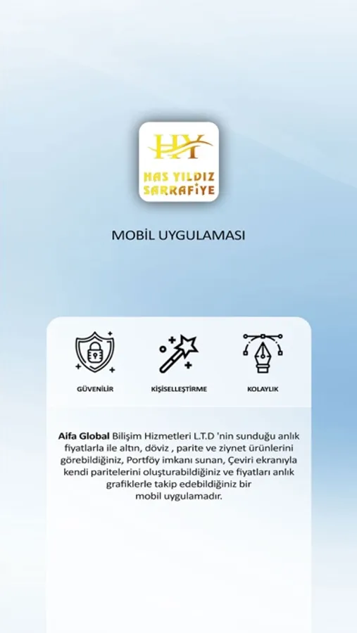 Aifa Global Bilişim Hizmetleri L.T.D 'nin sunduğu anlık fiyatlarla ile altın, döviz , parite ve ziynet ürünlerini görebildiğiniz , Portföy imkanı sunan, Çeviri ekranıyla kendi paritelerini oluşturabildiğiniz ve fiyatları anlık grafiklerle takip edebildiğiniz bir mobil uygulamadır.