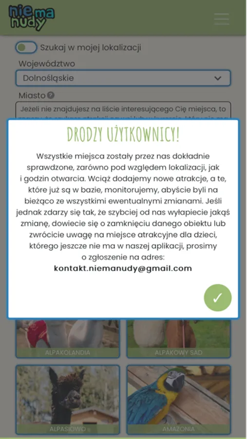 W naszej bazie już teraz czeka na Ciebie blisko 1500 atrakcyjnych miejsc na terenie całej Polski, a wciąż dodawane są nowe pozycje, co nie wymaga od Ciebie aktualizowania aplikacji!