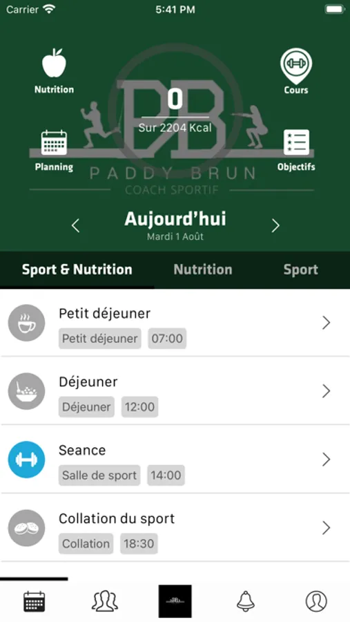 vous retrouverez la planification de vos repas et séances créés en amont, en réponse à vos objectifs. Dans votre planning vous pourrez ajouter vous-même les programmes sportifs et nutritionnels.