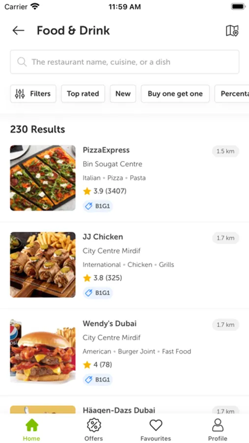 Browse rewards ENTERTAINER Buy 1 Get 1 Free offers from our available destinations.