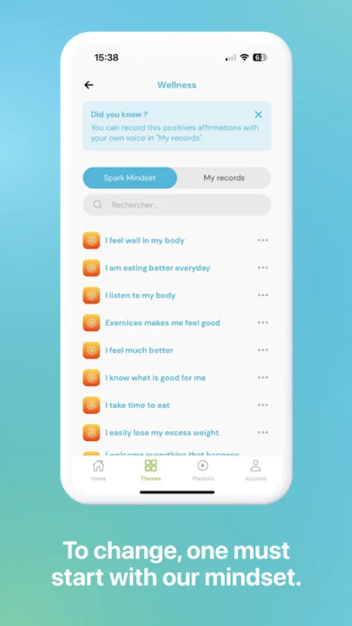 Spark Mindset is a mobile application for anyone interested in positive thinking, self-suggestion, the coué method, mantras...