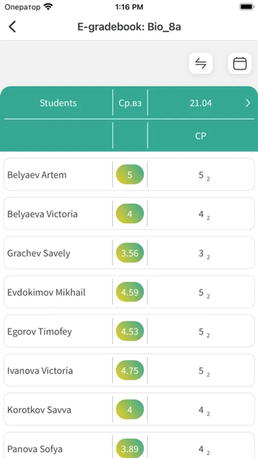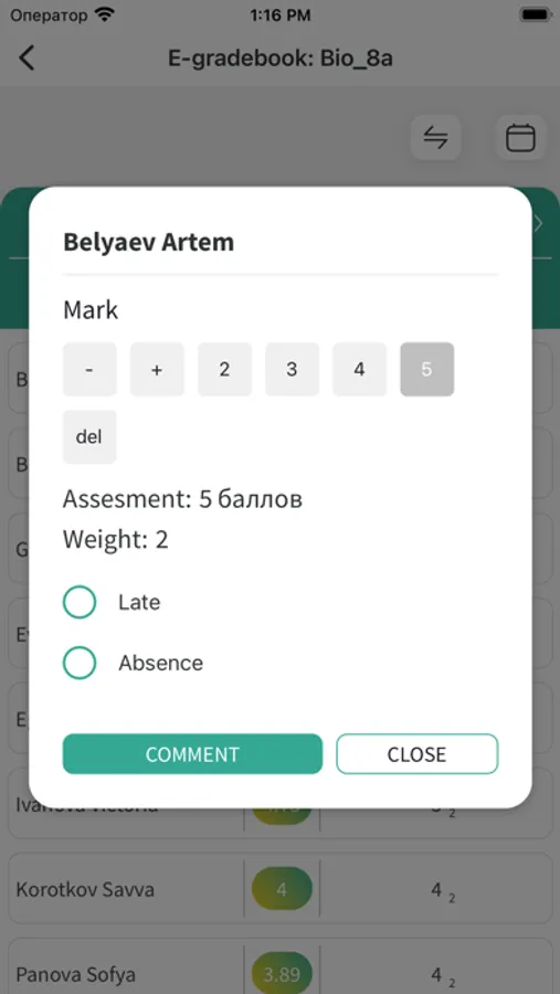 Interactive e-gradebook: entering and updating student grades, attendance marks in a couple of touches, editing all information about the lesson in a single space