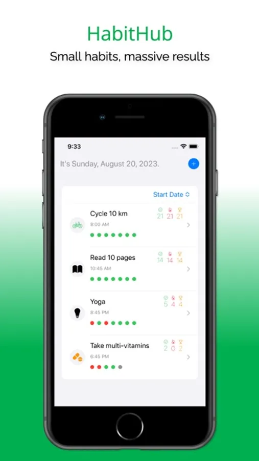 Take control of your habits and reach your goals with HabitHub - the simple, intuitive habit tracker designed to help you build positive routines that stick.