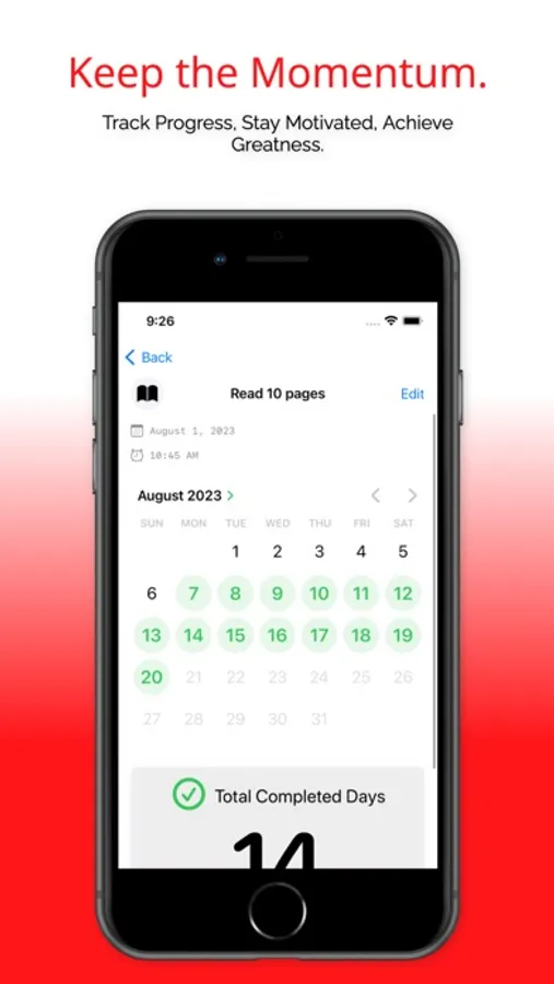 Easy Updates: Simply tap each day you complete a habit. Calendar view shows your progress at a glance.