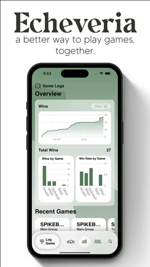 Whether playing a casual game of Spikeball at the beach or drowning in sweat during an intense round of Smash Bros, everybody loves to win. And though we all do out best in that pursuit, skill and prestige unfortunately fall before the ever elusive 'credibility:' a great beach trip or a long night of board games suddenly become tense as scores are misremembered, track records are exaggerated, and losses are muddled. Echeveria, with its rich set of game logging, tracking, and visualizing features, solves these manic moments by providing an empirical look into a group's game playing history. The friendly app slots perfectly into any group, physical or remote, allowing people to stay connected with their friends or bond with new people over the games they love, all while offering a road to the all important, intangibly beautiful, inspiringly powerful: bragging rights.
