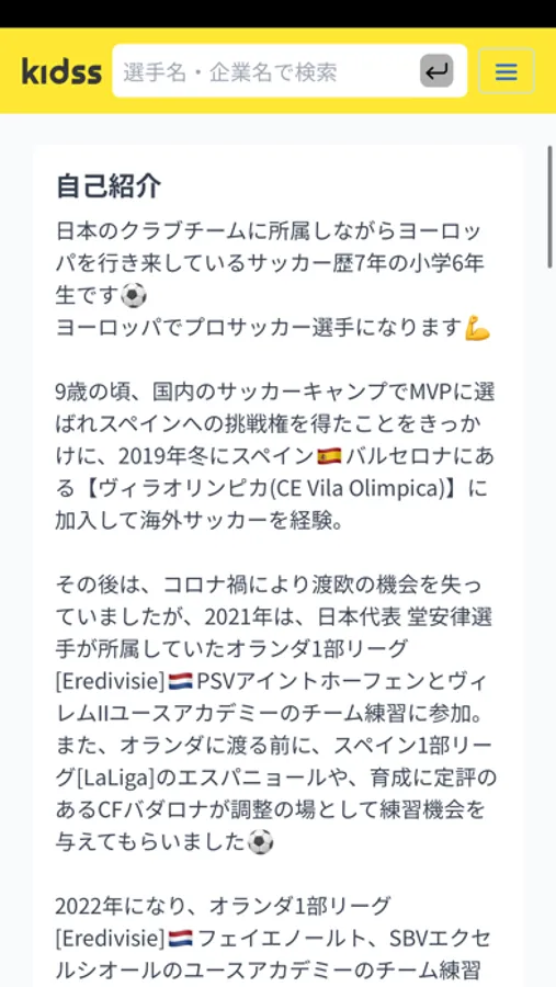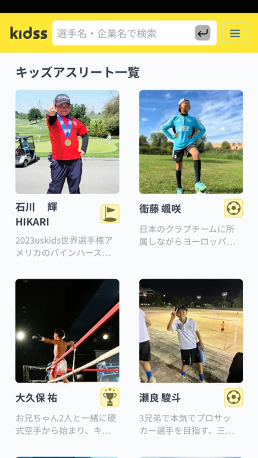 kidssは、キッズアスリートが主役となり、プロとしてまた人として必要なすべてのスキルと能力をスポンサー獲得体験を通じて学び、自身を成長させていくリアル育成ゲームのようなサービスです。この活動により、子どもたちは幼い頃から企業や社会との関わりをもつことができ、自身の成長や活動の場を広げていくことができます。