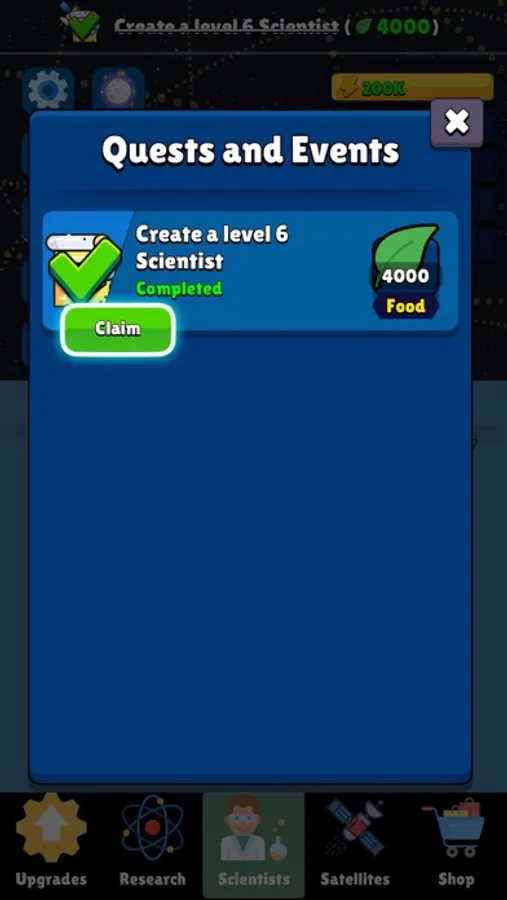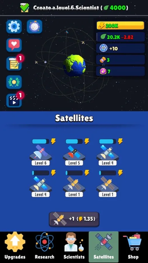 Discover the wonders of space in this immersive idle game that blends captivating storytelling with addictive gameplay mechanics. Merge scientists to level them up and unlock a variety of resources like food, science, and economics. Level up satellites to produce energy and computing power. Unlock upgrades to enhance your resource generation and expand your capabilities. Unleash the potential of the Research Center, where you can delve into over 50 researches for unique benefits.