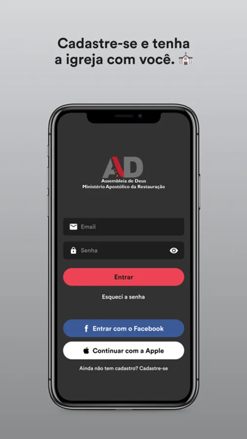 - Conecte-se com a igreja através dos grupos de interesse, receba conteúdo direcionado e obtenha sua carteirinha exclusiva.